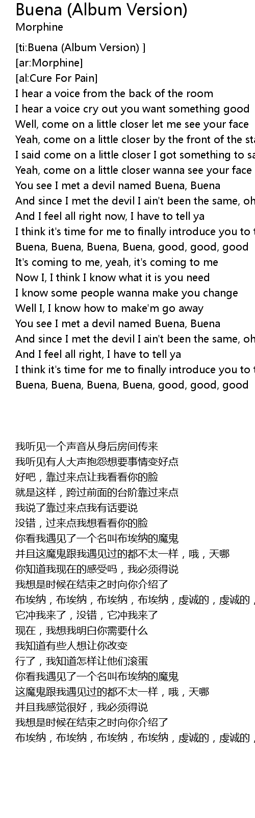 You see I met a devil named Buena, Buena |