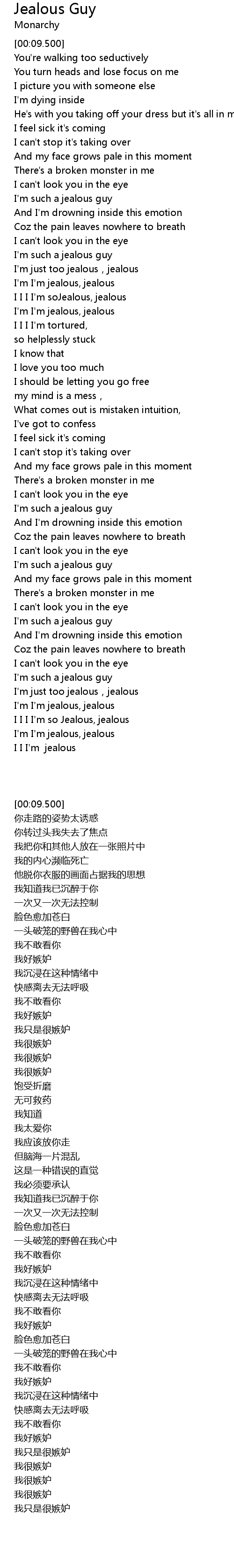 | [01:34.156] | I I I I' m soJealous, jealous |