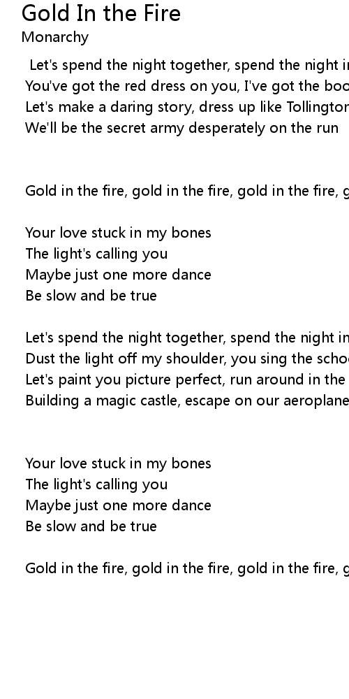 | Gold in the fire, gold in the fire, gold in the fire, gold in the fire is you | |