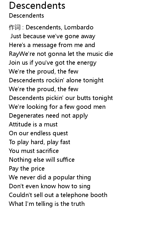 | 作词 : Descendents, Lombardo | |