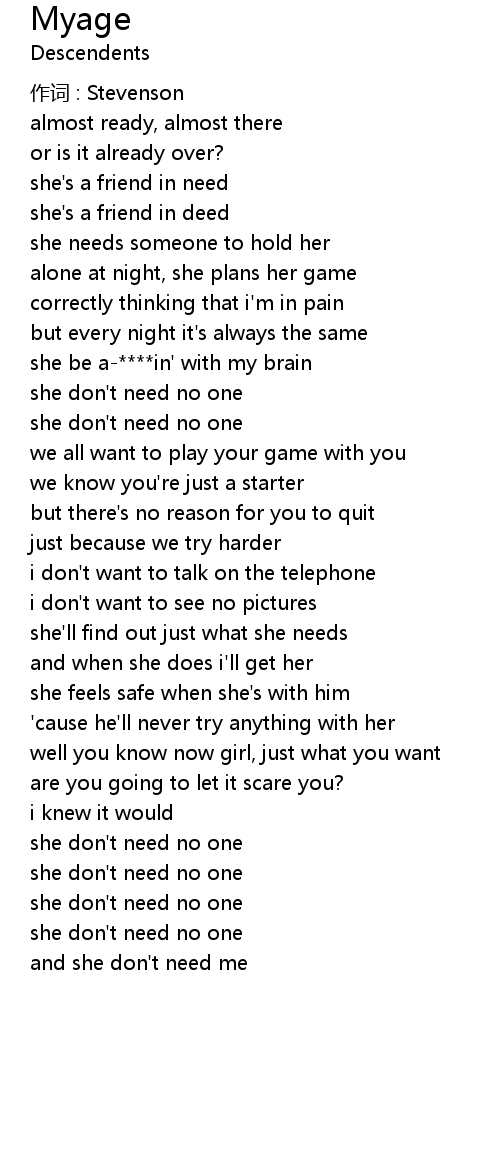 | and she don' t need me |