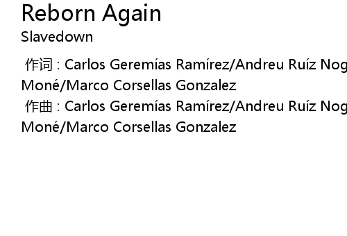 | [00:00.000] | 作曲 : Carlos Geremías Ramírez/Andreu Ruíz Nogue/Jordi Vila Moné/Marco Corsellas Gonzalez |