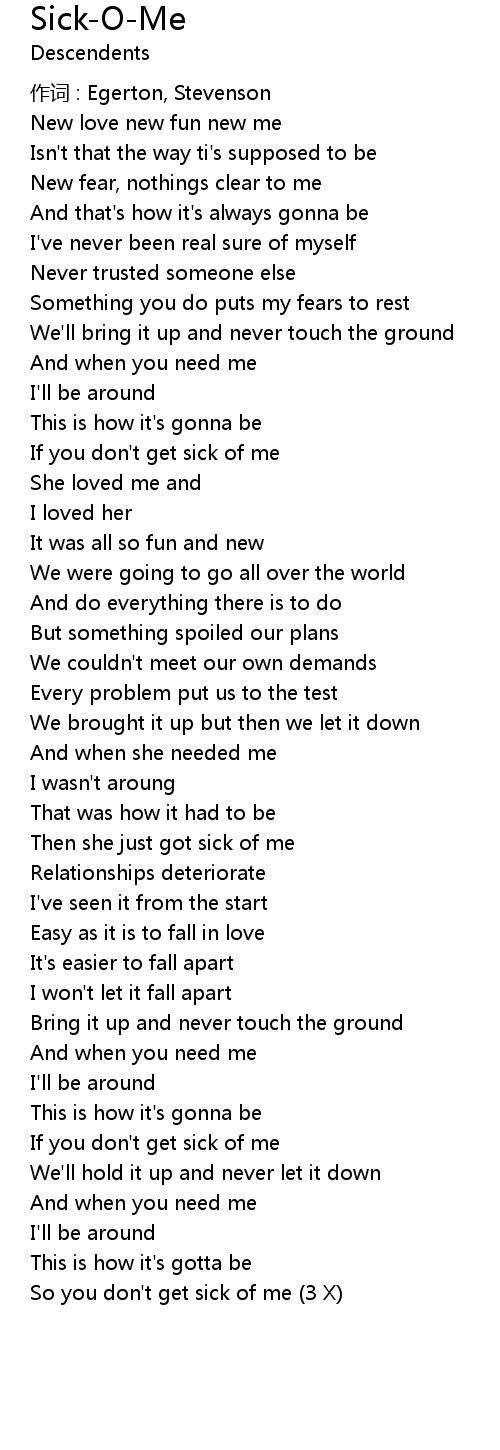 | Song | Sick-O-Me |
