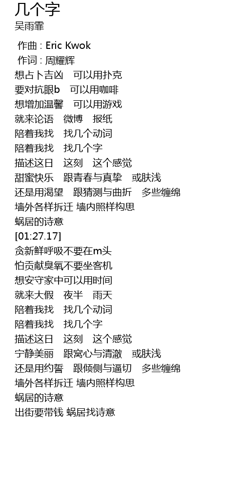 | [02:00.63] | 陪着我找 找几个字 |