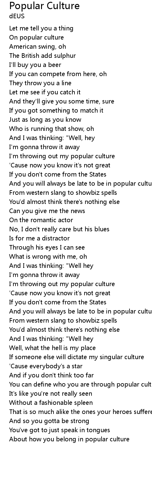 I'm throwing out my popular culture |