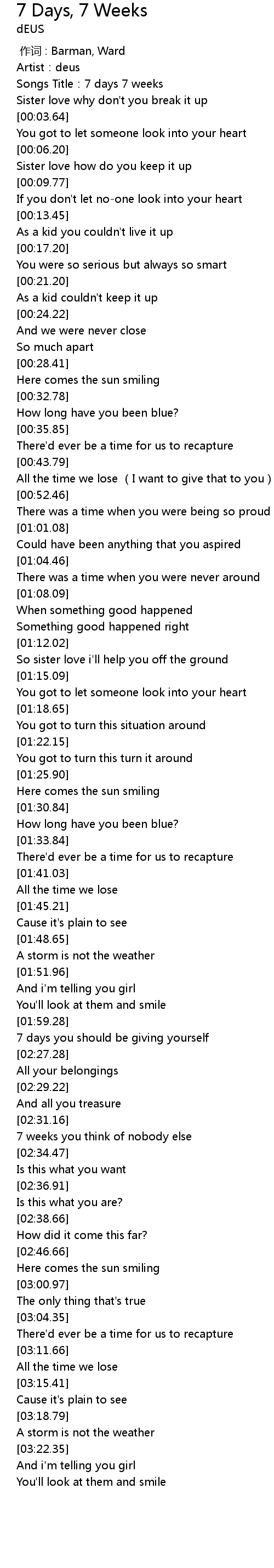 | [00:01.39] | Songs Title: 7 days 7 weeks |
