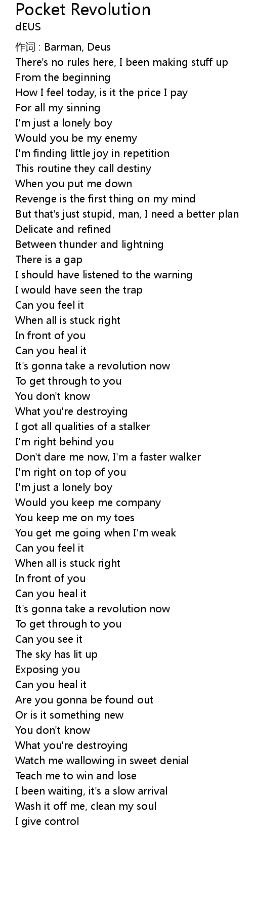 | Song | Pocket Revolution |