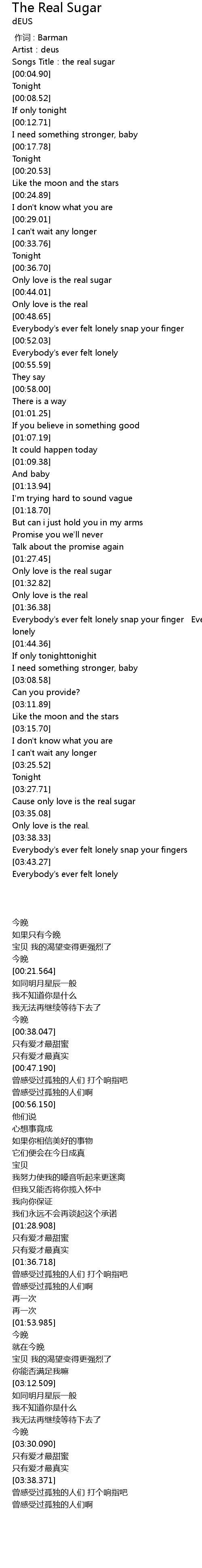 | [00:03.09] | Songs Title:the real sugar |