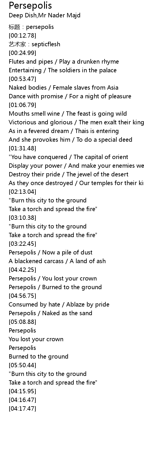 | [04:51.47] | Persepolis / Burned to the ground |