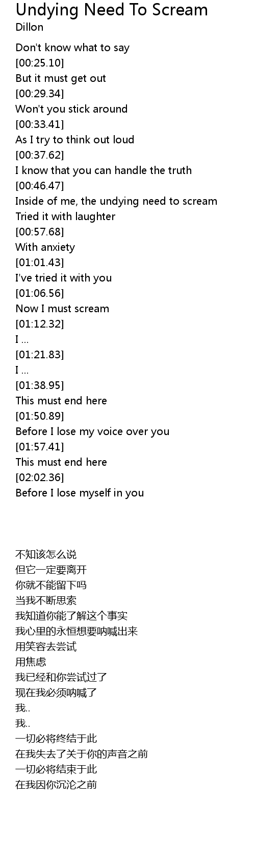 Inside of me, the undying need to scream |
