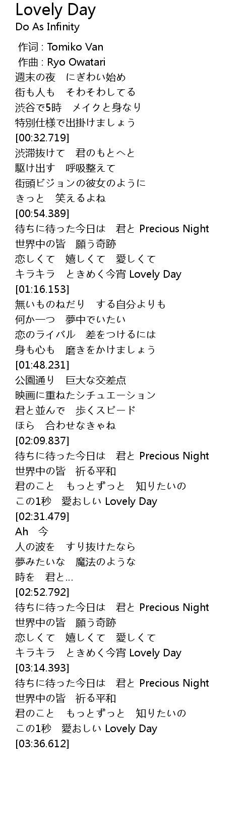 | [03:30.661] | この1秒 愛おしい Lovely Day |