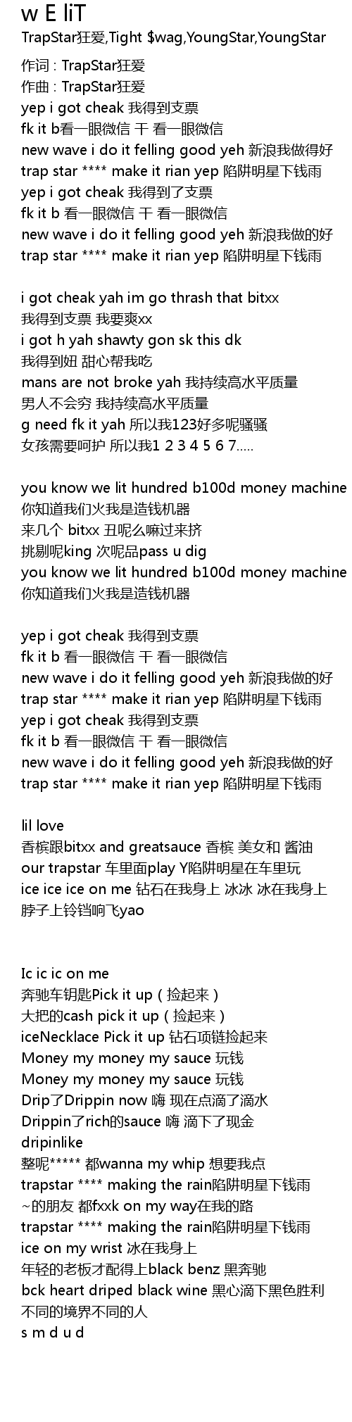 | 作词 : TrapStar狂爱 | |