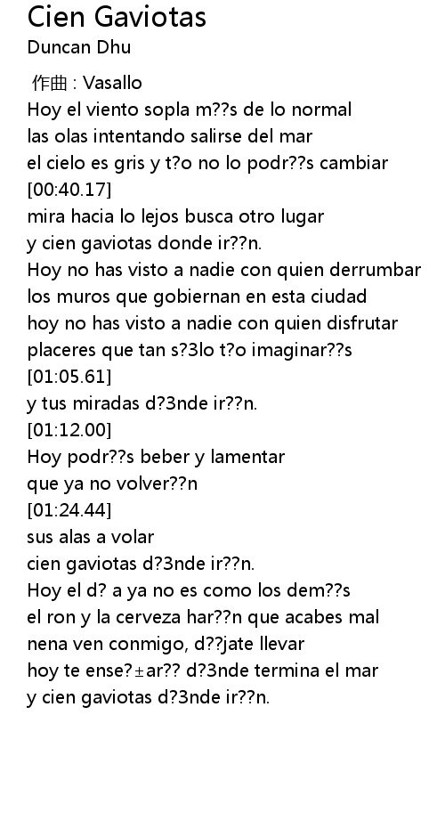 | [01:27.77] | cien gaviotas d?3nde ir??n. |