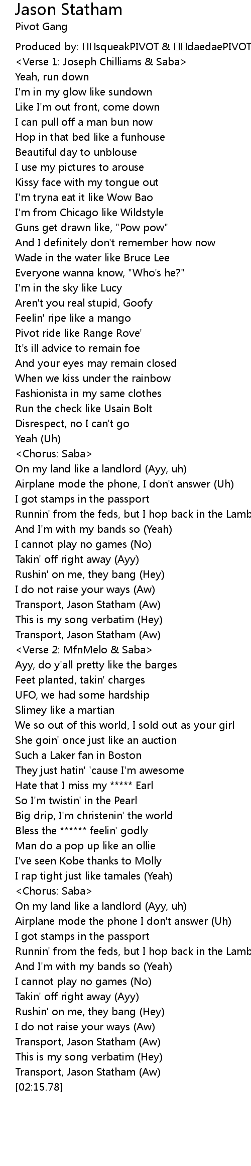 | Song | Jason Statham |