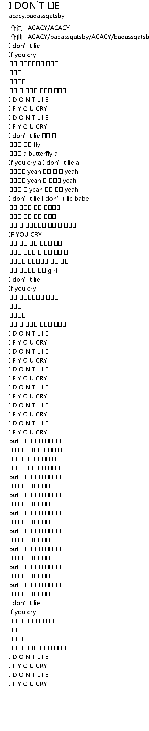| [01:07.146] | I don' t lie I don' t lie babe |