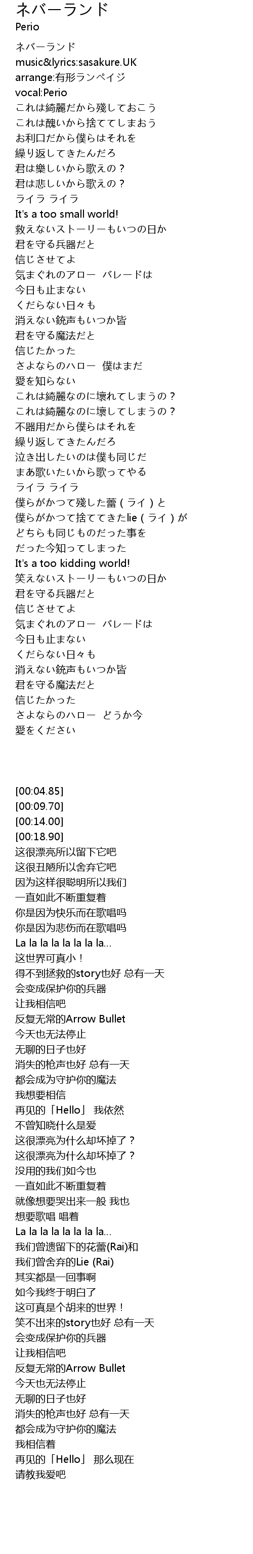 | [00:04.85] | ネバーランド |
