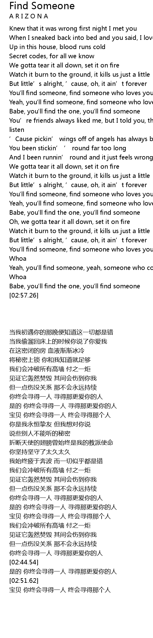 | [02:53.97] | Babe, you'll find the one, you'll find someone |