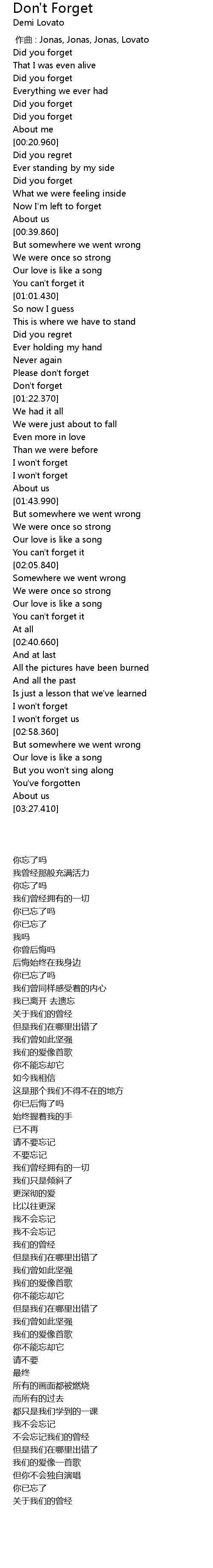 | [00:00.00] | zuo qu : Jonas, Jonas, Jonas, Lovato |