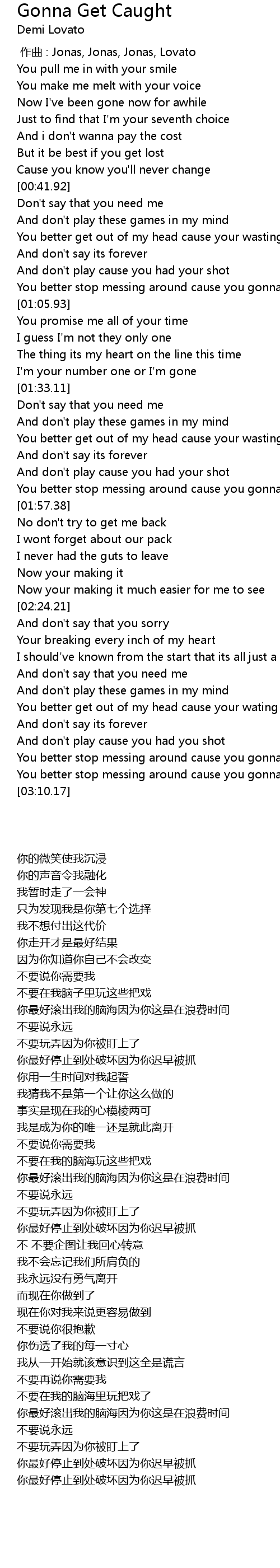 | [01:52.59] | You better stop messing around cause you gonna Get Caught |