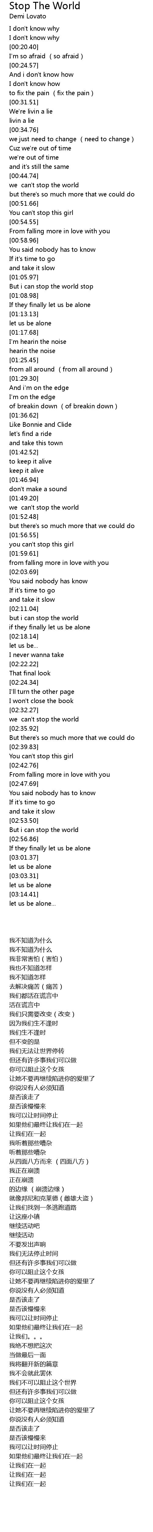 | [00:45.54] | we can't stop the world |