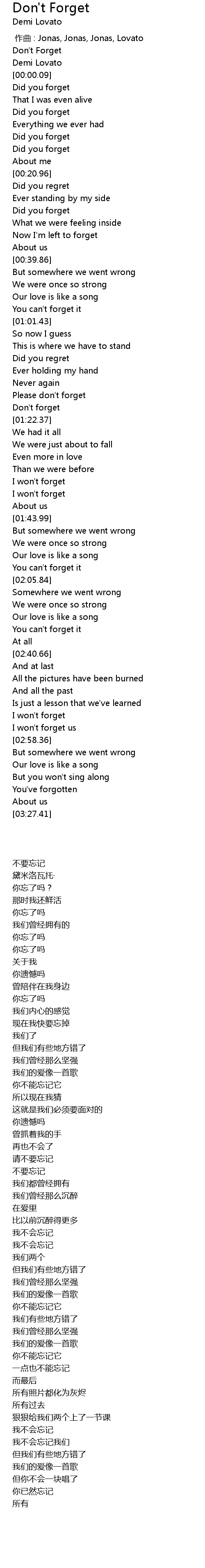 | [00:00.00] | zuo qu : Jonas, Jonas, Jonas, Lovato |