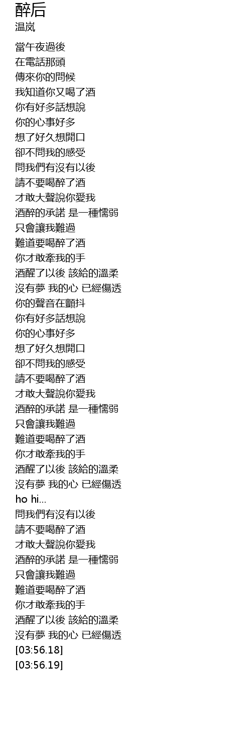 | [03:03.96] | 酒醒了以後 該給的溫柔 |
