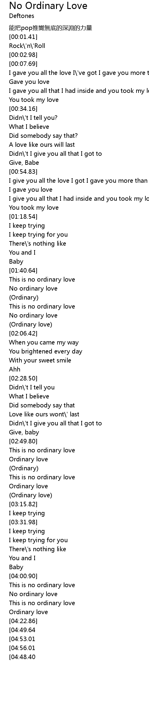 | [04:06.50] | No ordinary love |