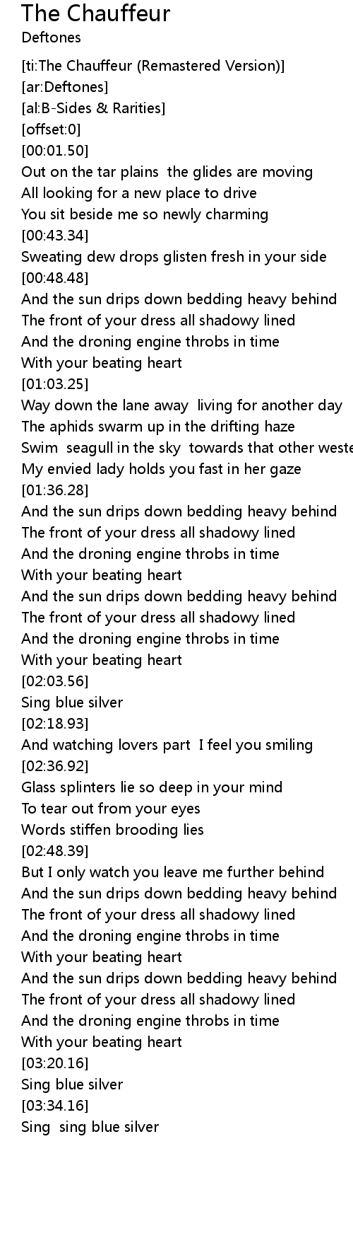 [ti:The Chauffeur (Remastered Version)] |