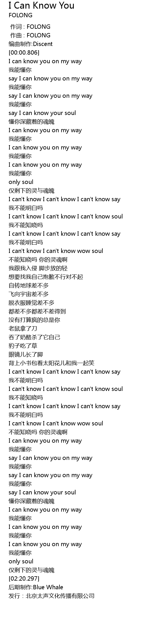 | [01:38.285] | I can' t know I can' t know I can' t know say |