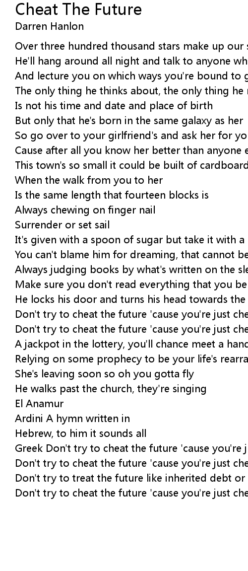 Don't try to cheat the future 'cause you're just cheating yourself |