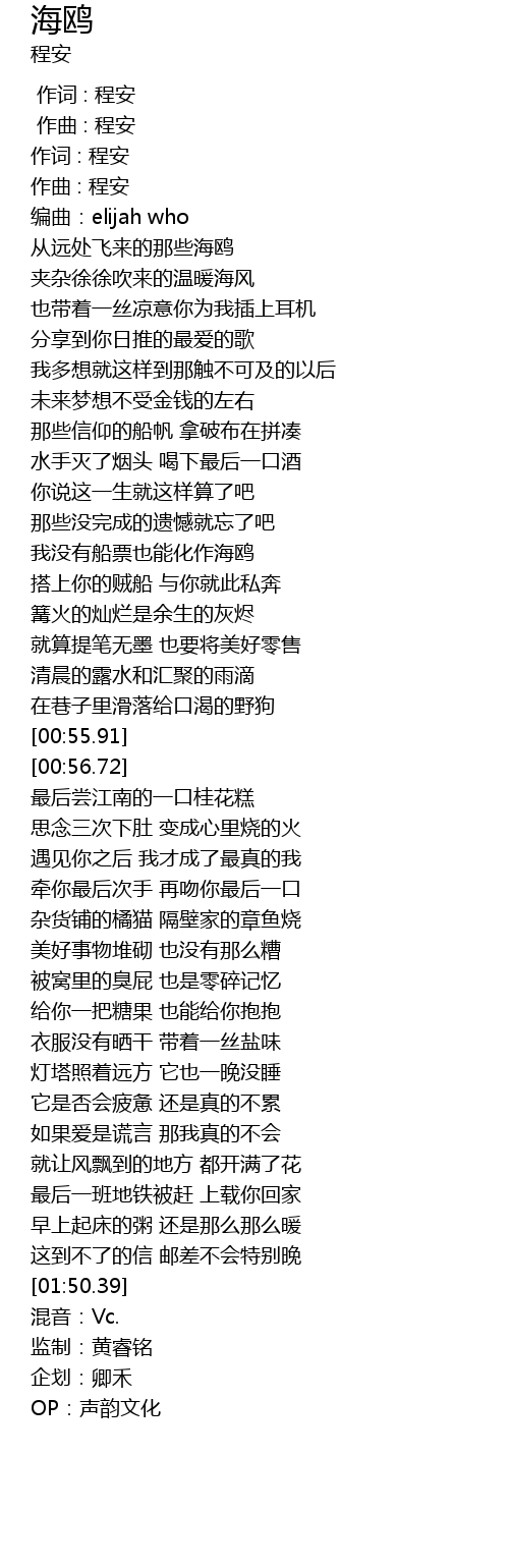 | [01:59.58] | 企划:卿禾 |