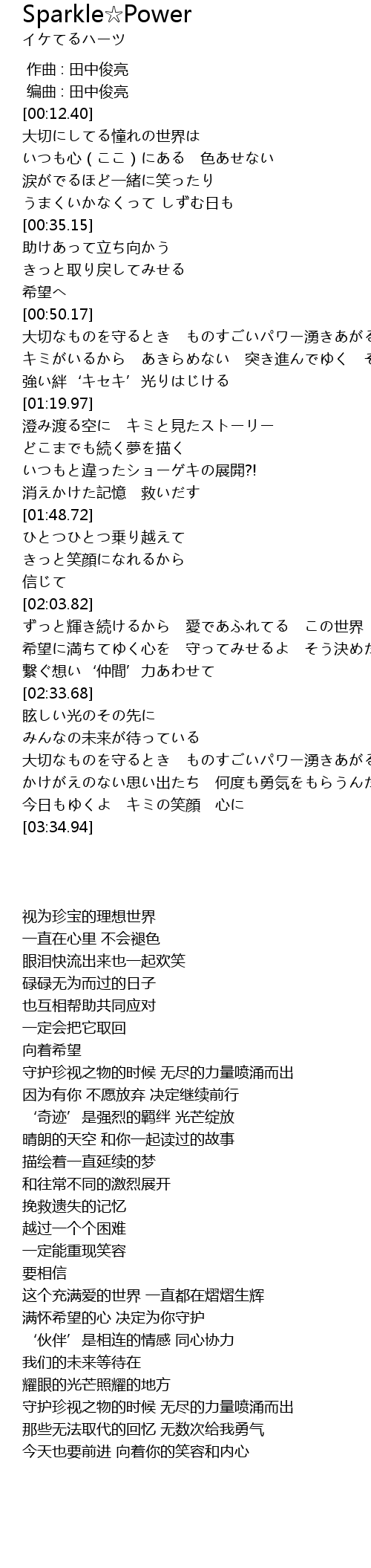 | [01:13.48] | 強い絆‘キセキ’光りはじける |