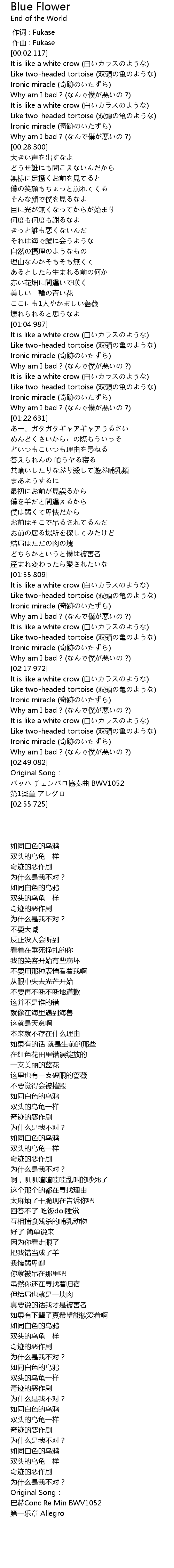 | [02:04.428] | Why am I bad ? (なんで僕が悪いの ?) |