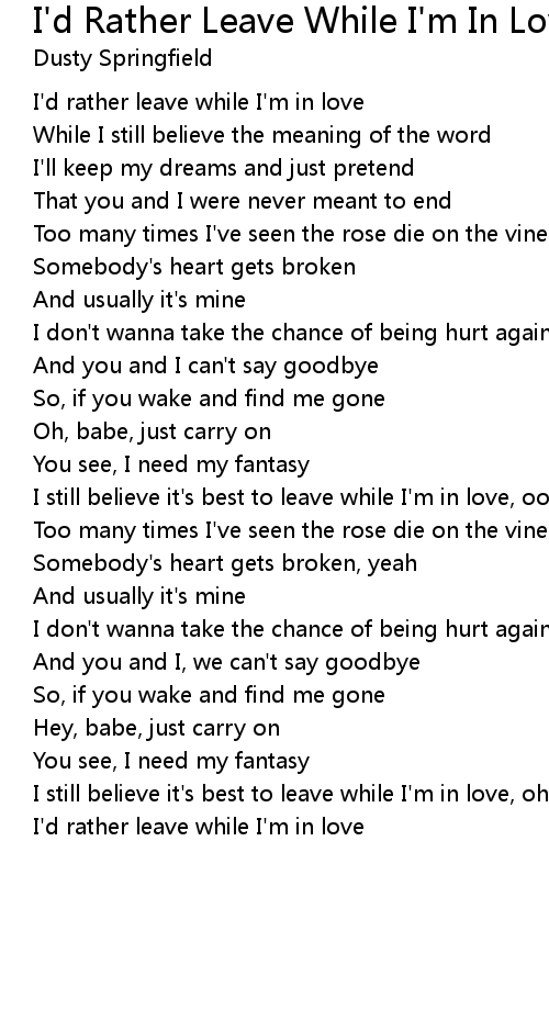 I'd rather leave while I'm in love |