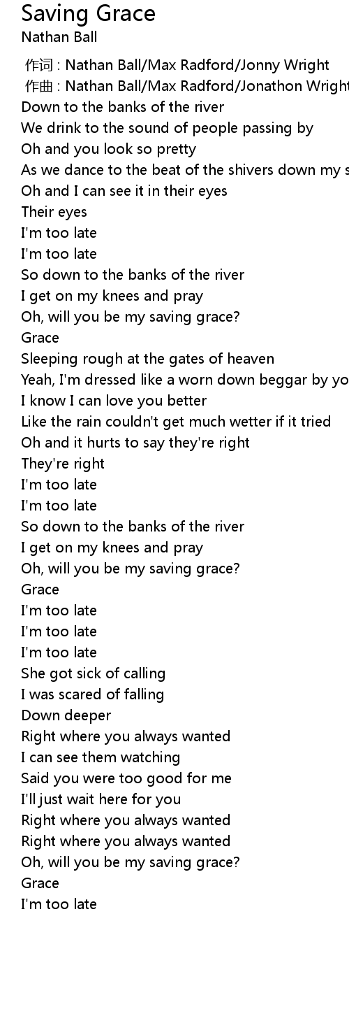 | [00:57.456] | Oh, will you be my saving grace? |