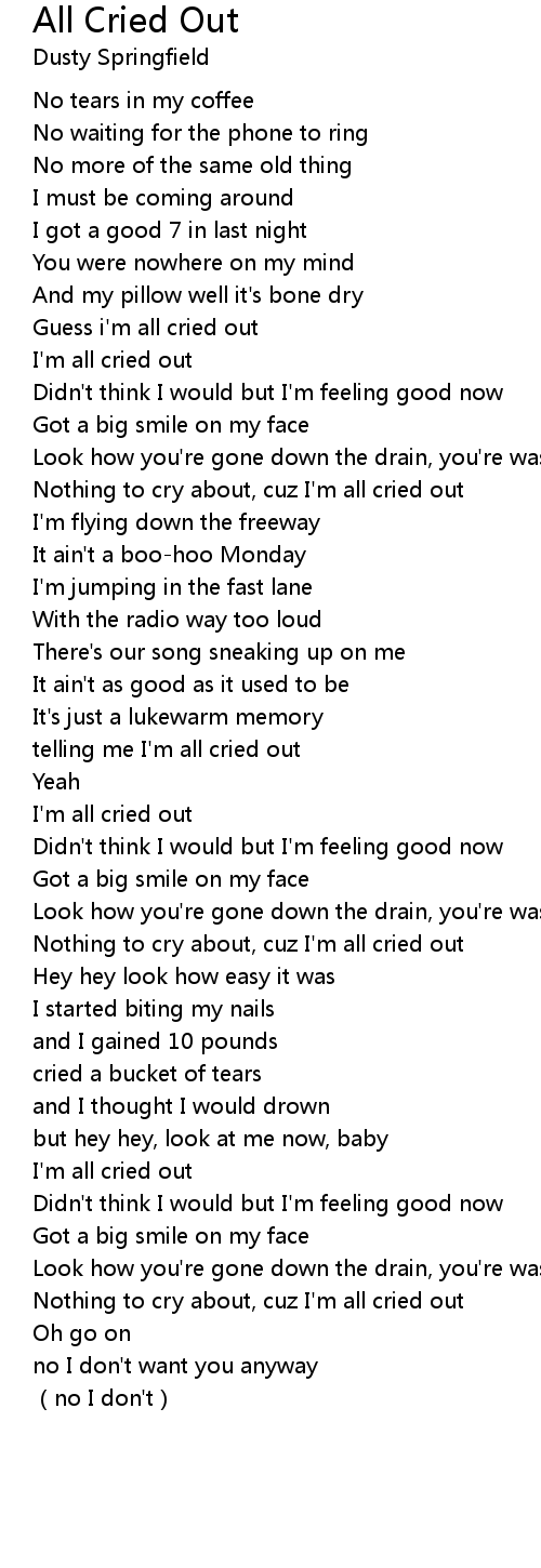 | [01:04.99] | telling me I'm all cried out |