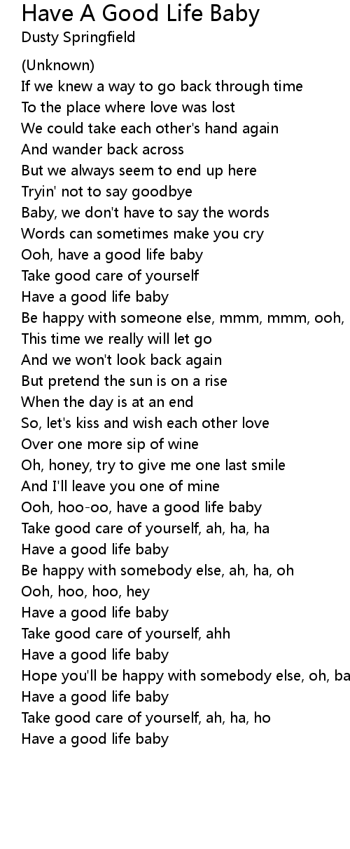 Ooh, hoo-oo, have a good life baby |