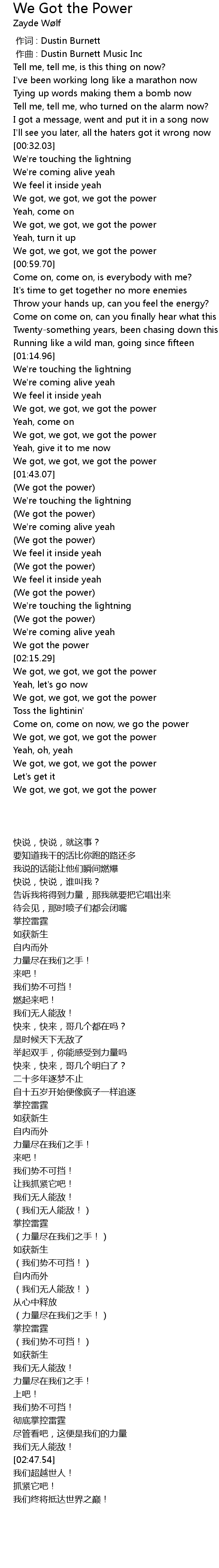 | [02:11.00] | (We got the power) |
