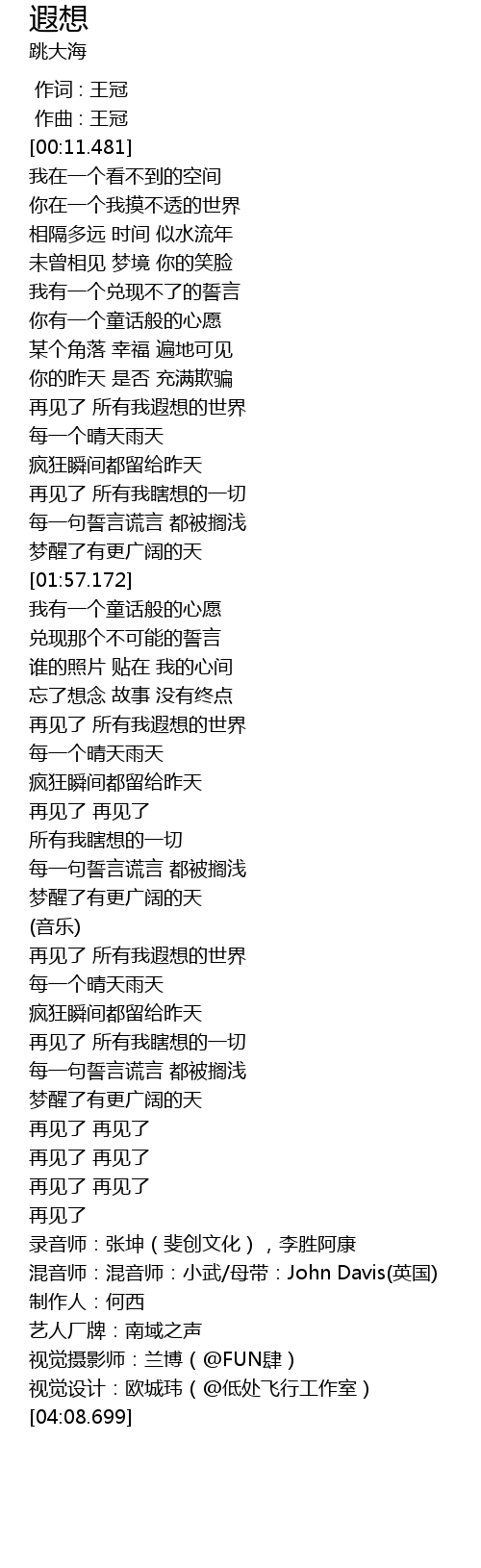 | [00:00.000] | 作词 : 王冠 |