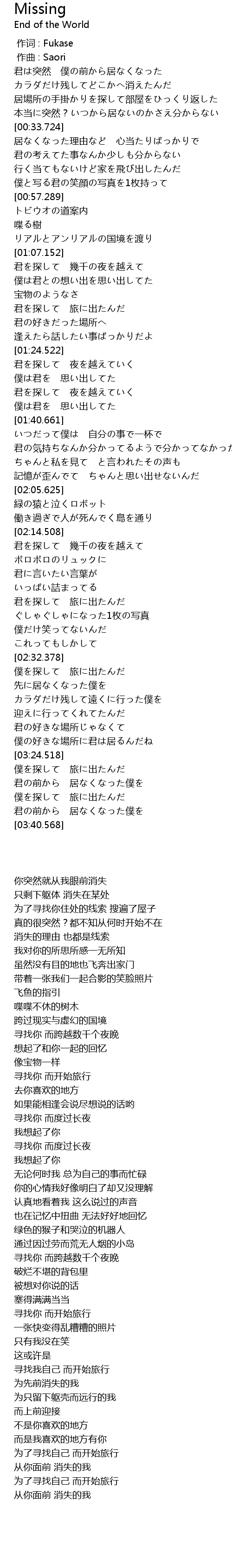 | [00:00.000] | 作词 : Fukase |