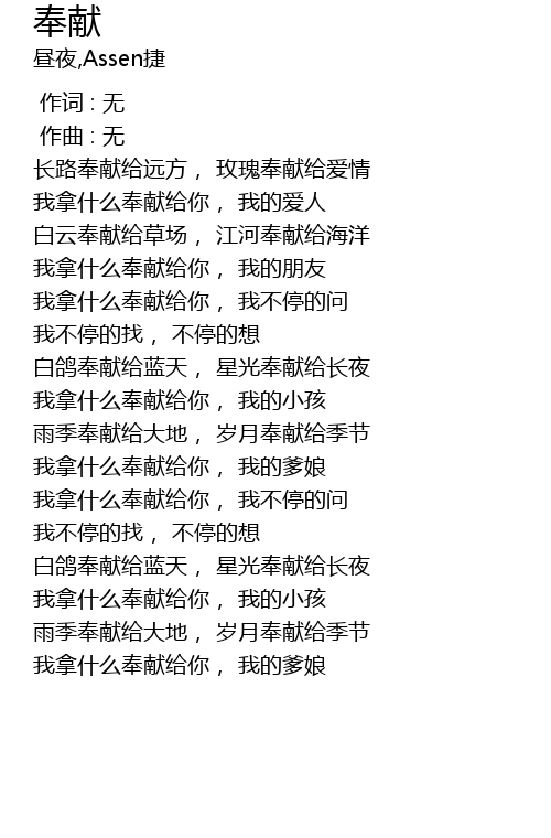 | [00:35.398] | 白云奉献给草场, 江河奉献给海洋 |