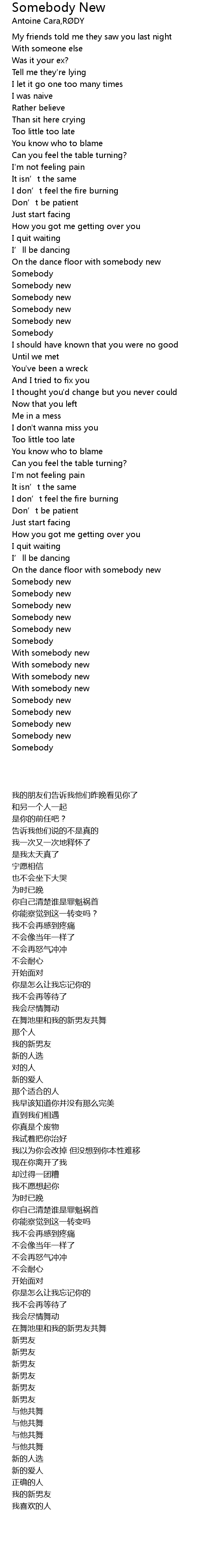 | [03:03.99] | Somebody new |