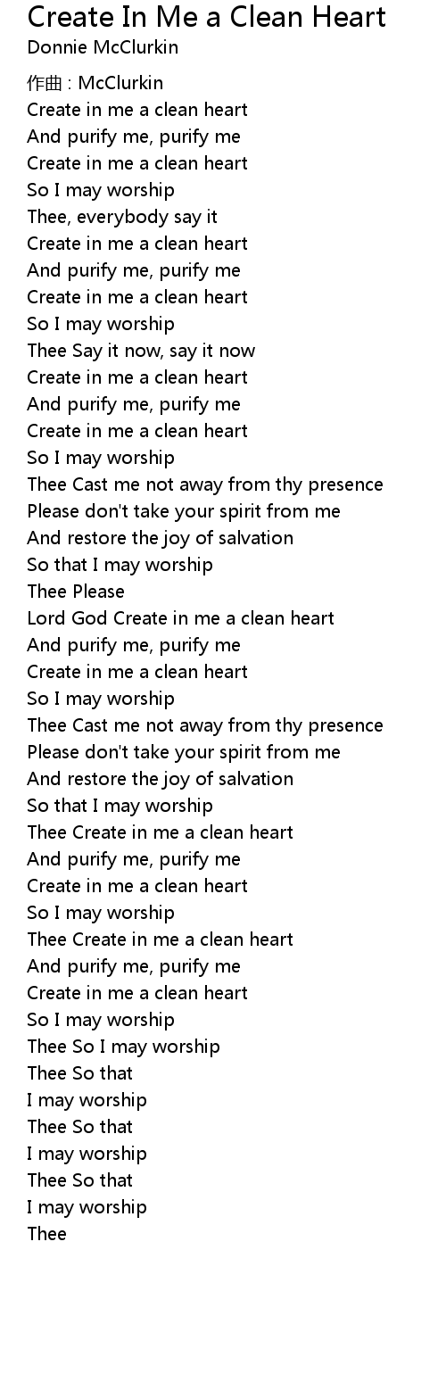 | Create in me a clean heart | |