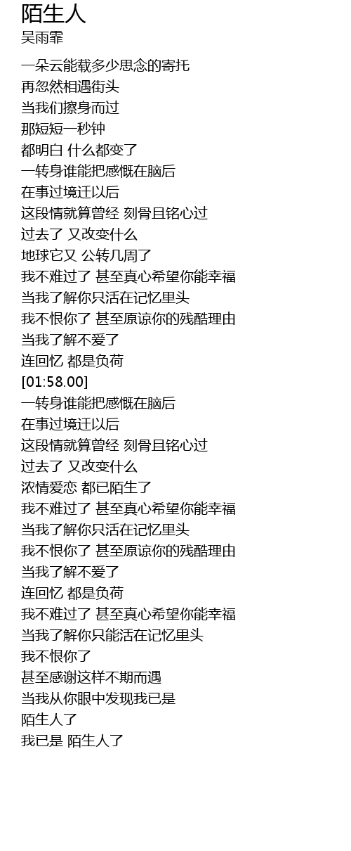 | [03:29.88] | 陌生人了 |