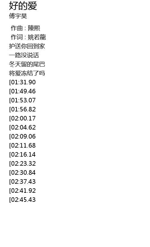 | [01:12.50][02:30.84][03:20.64] | 好的爱 是暂别以后强烈想回来 |