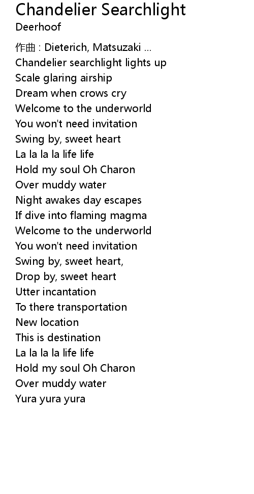 | Song | Chandelier Searchlight |