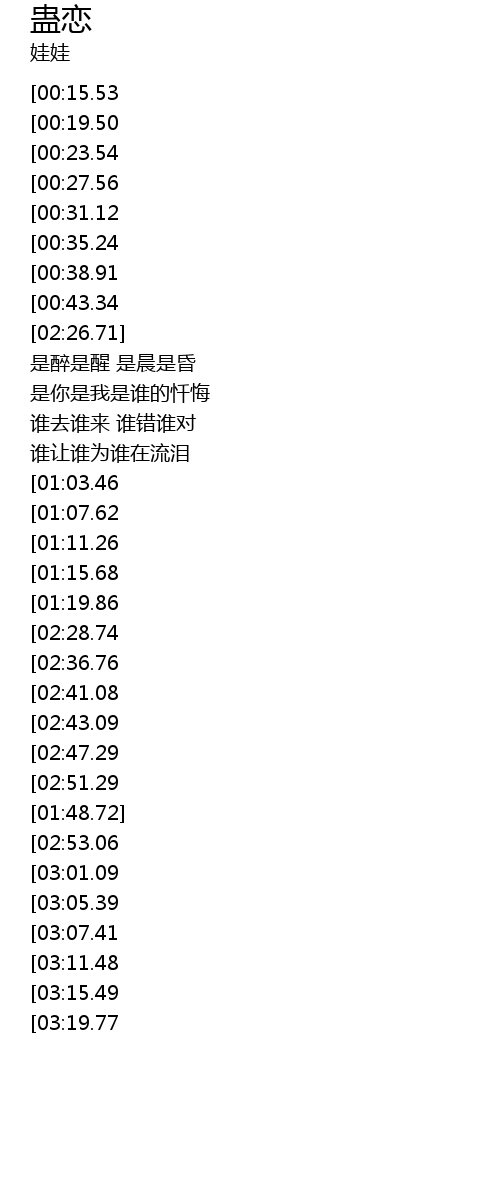 | [01:54.65][00:15.53] | 若悲若喜 若有若无 |