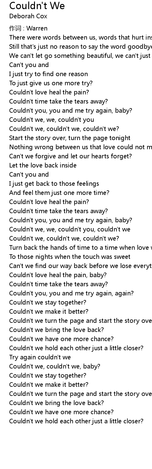 | Couldn' t we, we, couldn' t you, couldn' t we | |
