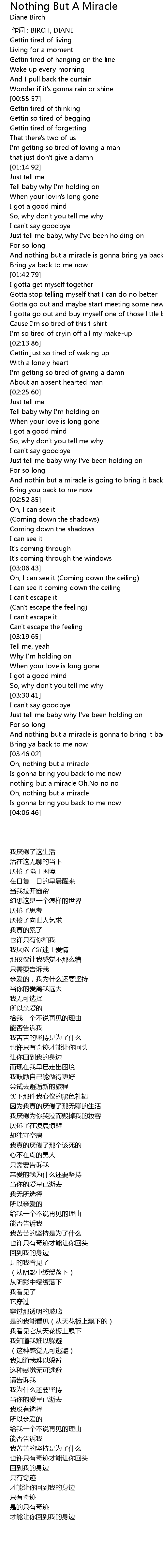 | [03:53.00] | nothing but a miracle Oh, No no no |
