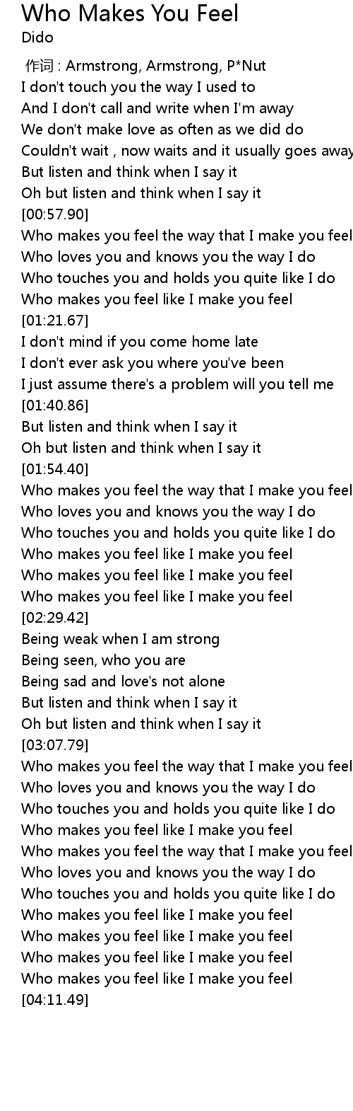 | [04:06.54] | Who makes you feel like I make you feel |